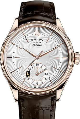 Все модели Rolex Cellini Dual Time представлены в золотых корпусах: из белого или особого розового золота Ролекс, отличающегося тем, что при любых обстоятельствах уникальный цвет благородного металла сохраняет насыщенность и яркость. На циферблатах черного, серебристого или коричневого цветов хорошо видна разметка, позволяющая быстро считывать показания. Помимо обязательных часов, минут и секунд, часы Rolex Cellini Dual Time указывают время второго часового пояса, а также подсказывают: там наступил день или ночь.